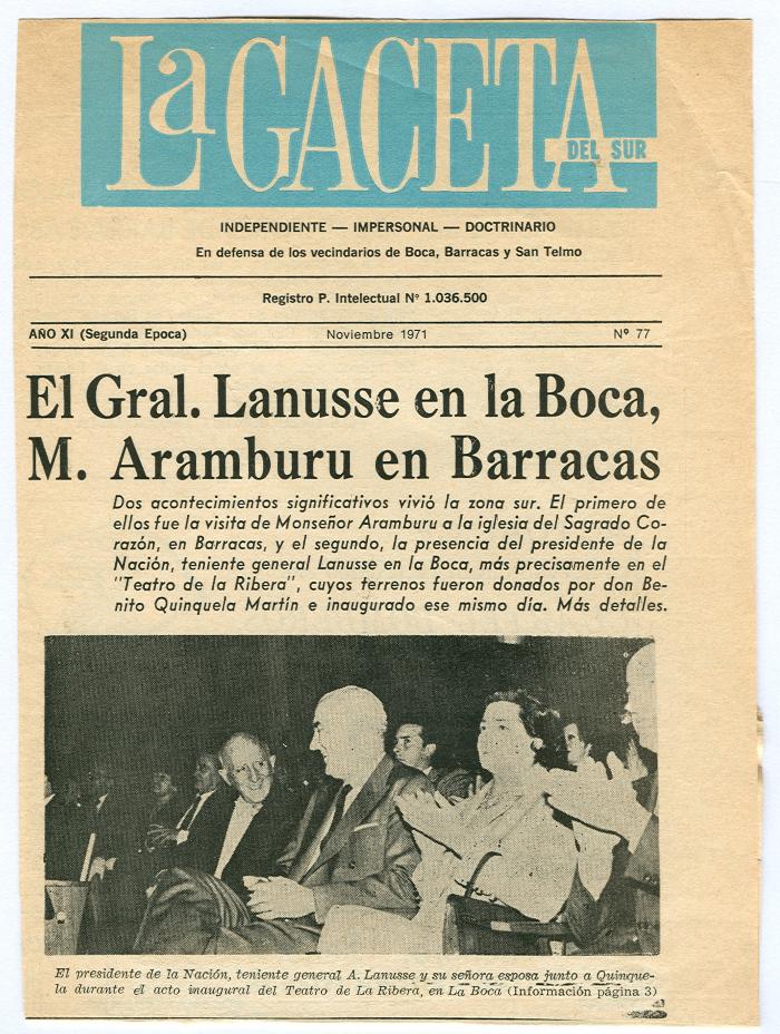Bibliorato compuesto por artículos de prensa, cartas, notas manuscritas en tinta, autógrafas que permiten reconstruir la historia del Teatro de la Ribera, creado por el artista en 1971. Sumario: Consejo Nacional de Educación: