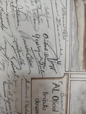 Dedicatoria a Santos Sgarlata con dibujo de Delia A. Bucich