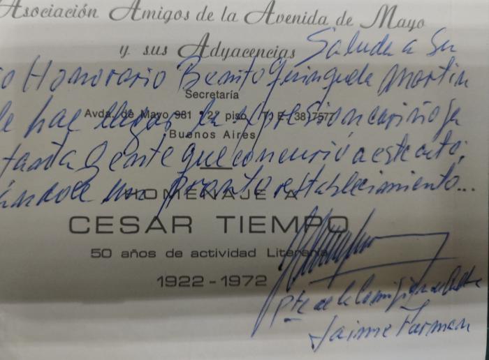 Invitación al homenaje a César Tiempo