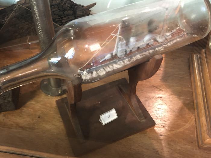 Barco en botella con pie de madera (Quinquela)