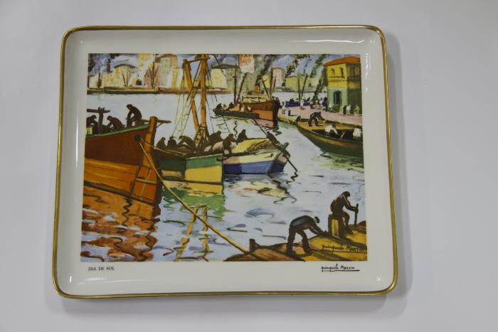 Bandeja de porcelana ilustrada con reproducción de Quinquela Martín (Día de Sol)