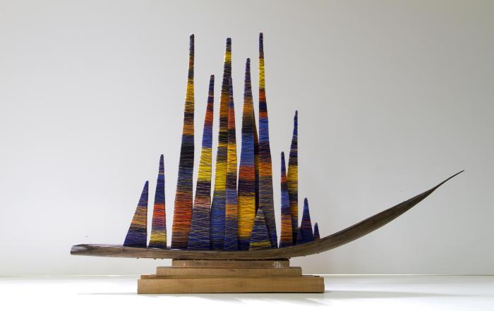 Budasoff toma la responsabilidad de apropiarse de una iconografía con historia, pero sus barcos no se parecen a ningún otro. Los construye partiendo del cristal que le provee el diseño industrial, su formación de base, disciplina a la que le debe el tratamiento geometrizado de los perfiles. Pero a esa matriz de abstracción de las formas se le entremezcla el filtro de lo orgánico, que la instó a incorporar el color de la fibra textil y la calidez de las vainas de palmera.